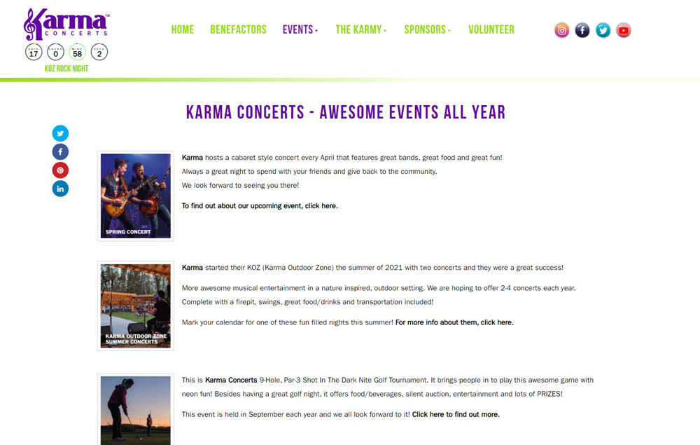 Our "Annual Karma Concerts" will be held in April. This event is sponsored by people and businesses who care about helping children. If you would like to give your support, please make a donation online or contact one of our board members.