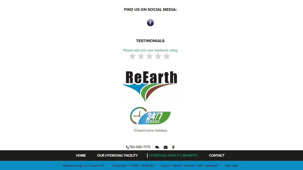 ReEarth is a regional hydrovac disposal company. They needed an online presence that they didn't have. We gave them a place to send potential customers for information.  Visitors, old and new can learn more about their safety protocols and the benefits of using their facility.