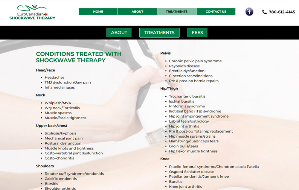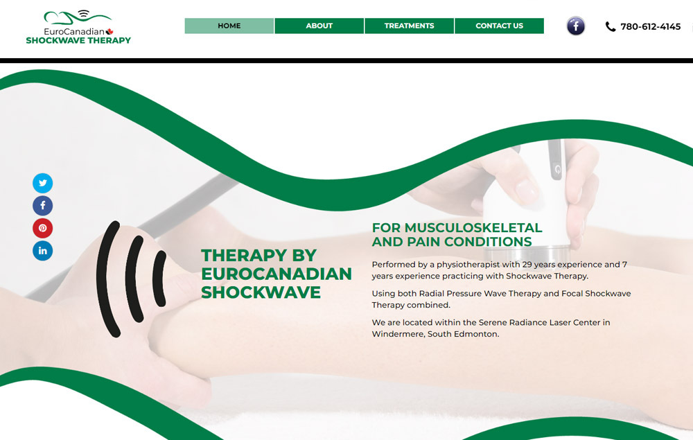 This is for a new shockwave therapy business in Edmonton. We designed the logo, brochure and stationary, as well as the website. Implemented some features to go to a specific section down the page from a button at the top and the parallax background to show an image in the background, as you scroll. We wish him all the best in this new venture.