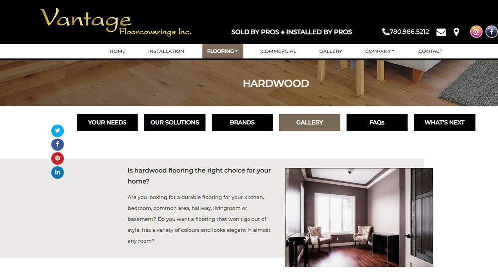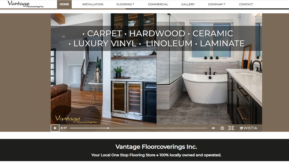 Vantage Floorcovering Ltd, a long-established flooring company in the City of Leduc, was looking to change up their website to reflect their new suppliers, styles and products they have embraced. They called on Industrial NetMedia to design new pages to reflect the changes, as well as to make the site more user friendly and mobile friendly. We incorporated a video to showcase their products, as well as animations like sliding text and photos.