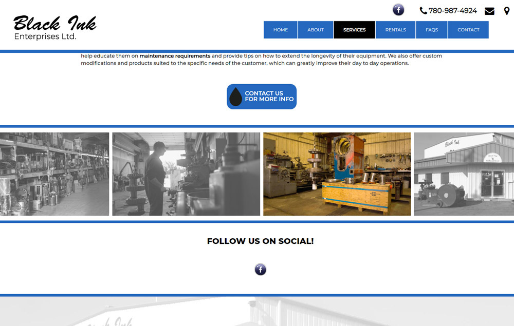 Black-Ink Enterprises needed a more modern and up-to-date website so they contacted Creative101. We gave them an interactive website to showcase their products and services. They will have an e-commerce page in the near future with equipment you can rent or buy.