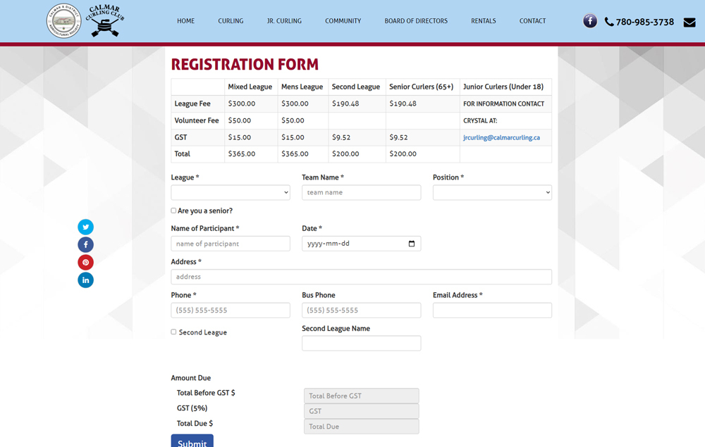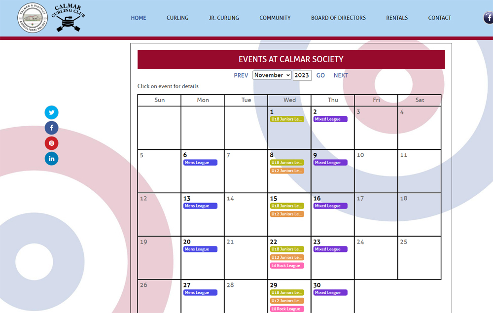 Calmar Curling didn't have a website so we got them online! They wanted a Calendar of Events to show the leagues or special events, as well as a way for patrons to pay online for curling leagues.