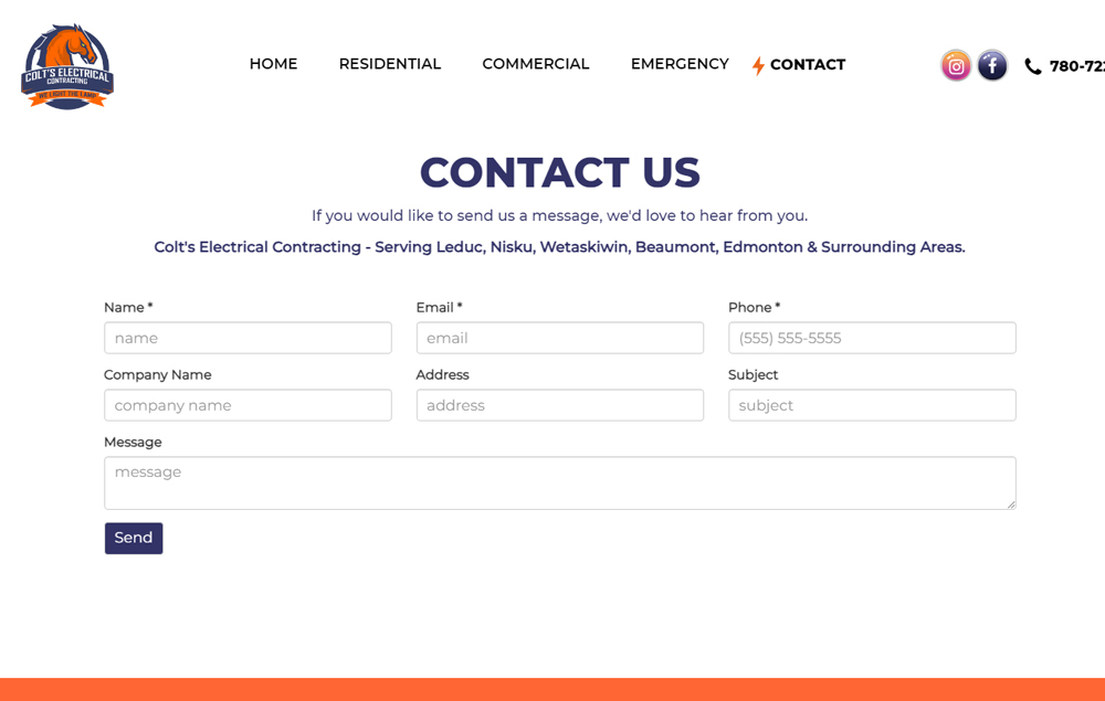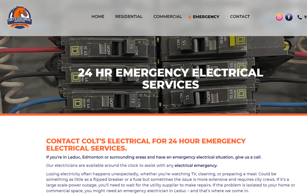 Colt's Electrical had a website that wasn't doing much to bring in new customers. We gave them a new website using their bold colours that shouts modern and professional. Using photos of the work they've done to show their vast knowledge in the electrical field. The navigation is simple and information is easy to find. There is a contact form and 'easy to call' phone number on mobile phones making it easy to reach them. We also added some movement to the site. Using sliding text, a parallax image feature and a moving graphic over photos, we've given them a modern and fun website. Their website is responsive, making it work smoothly on all screen sizes, including mobile phones.